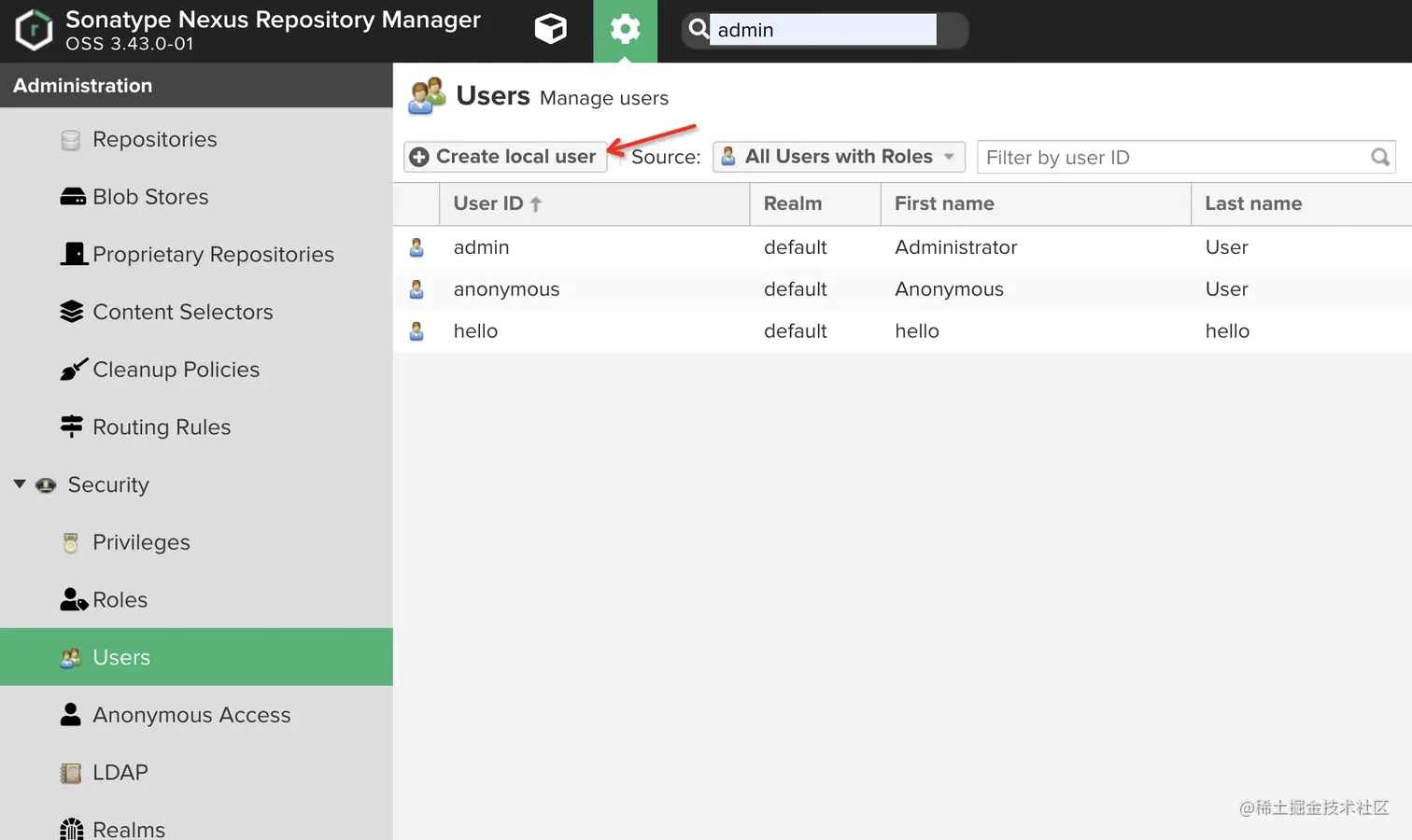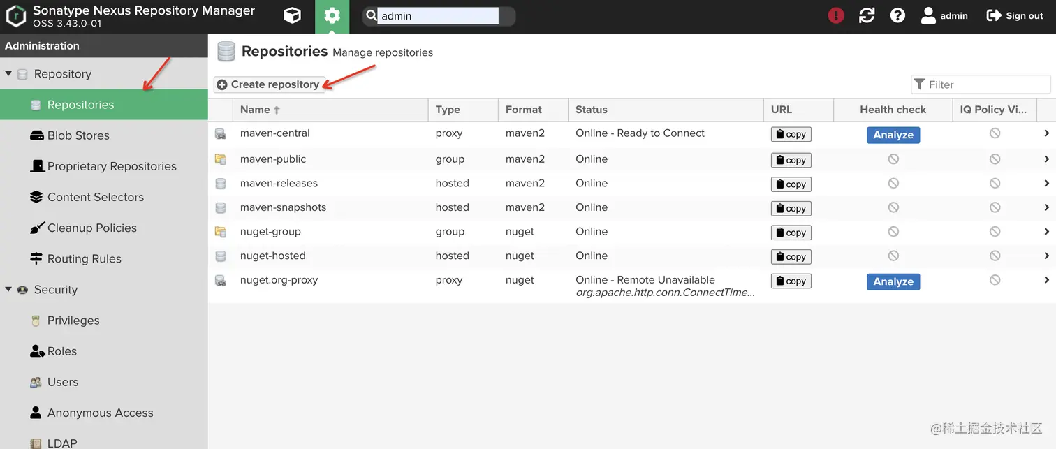 - nexus控制台创建账号