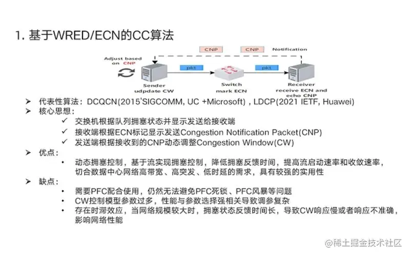 ▍若依赖交换机的配合,逐跳记录网络拥塞控制,则基本是基于ECN实现,或是在交换机上部署其他自研的算法与网卡侧配合。