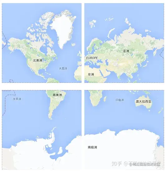 稍大一个层级1情况下,用了四张256*256像素的图片(各张图片中表示的信息更丰富了)来表示整个地球: