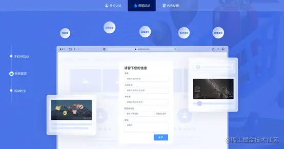 WuThreat提供身份认证与业务身份多场景服务,紧贴业务系统的多场景身份管理需求。有基于身份的身份认证场景,包含登录、注册、忘记密码的功能;也有针对活动营销的场景,如手机号活动、报名留资、活动秒杀的模块;更拥有内容反爬的手段的进行保护。