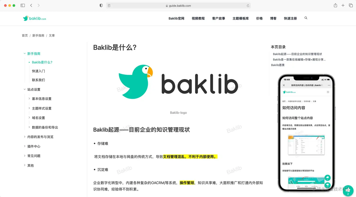 自己开发帮助中心页面的话需要花费一定时间,并且后期客服/运营维护更新较为困难,调研了市场上多家SaaS产品,终于发现了一款符合需求的帮助中心搭建产品—Baklib,提供不同的主题,每个主题制作出来的页面效果不同,根据产品调性进行调整,形成统一风格,并且多端适配,支持电脑端和手机端展示,可以直接将页面嵌入官网或者APP中,用户点击即可访问。