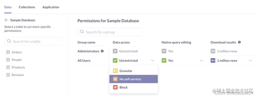 通过设置对Metabase包含的示例数据库的权限,了解Metabase如何处理数据权限。