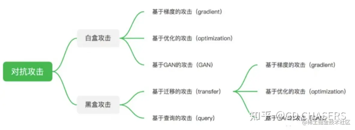 目前主流对抗攻击算法的总体分支与逻辑如下: