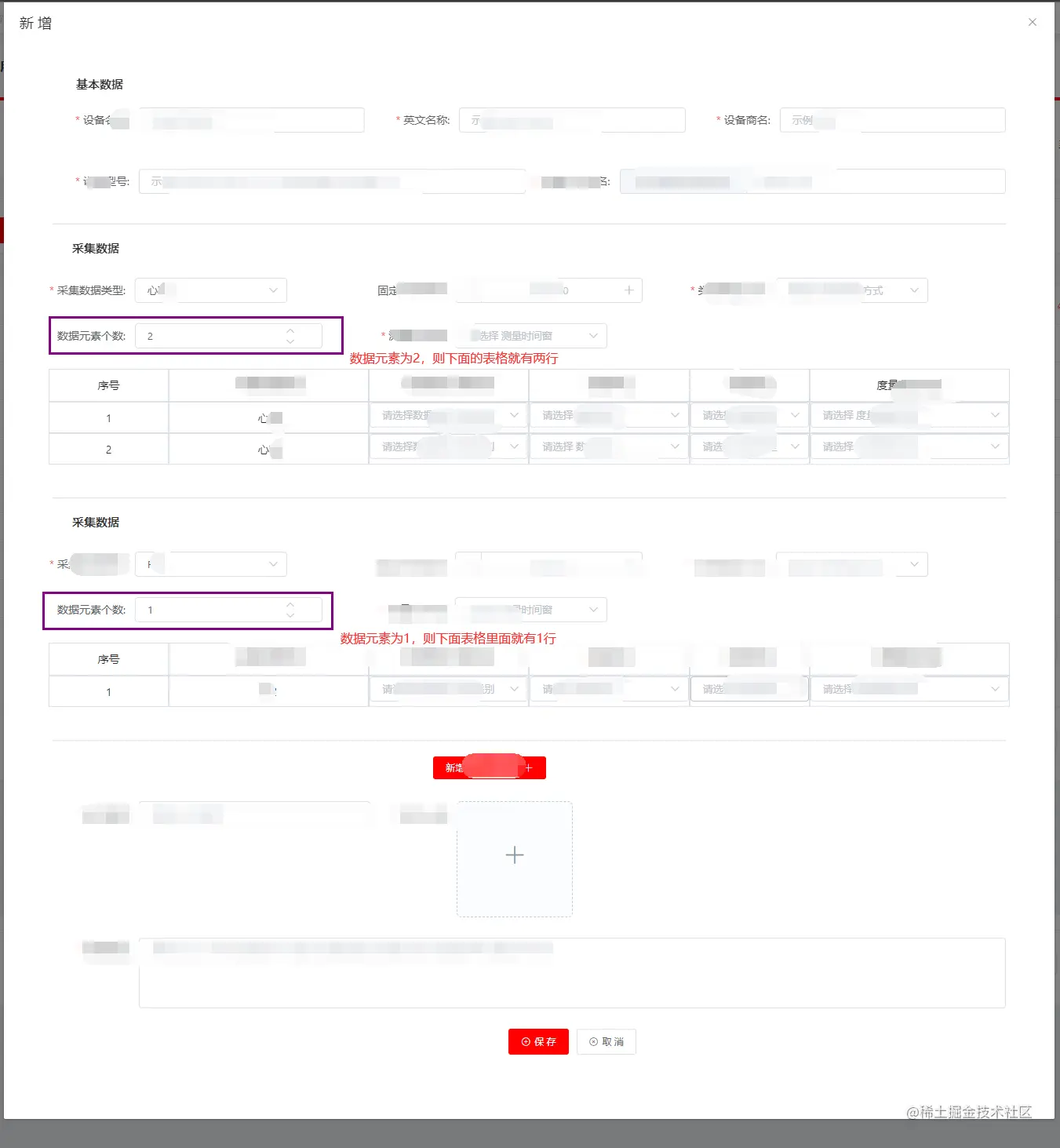 现在我们就实现了,点击新增按钮时,动态的添加一个采集数据表单,默认之后一个,最多只能添加采集数据类型下拉框中的个数。