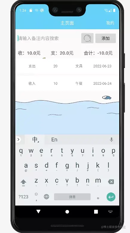 如果想要添加新的支出/收入,请点击添加键,进入到添加页面