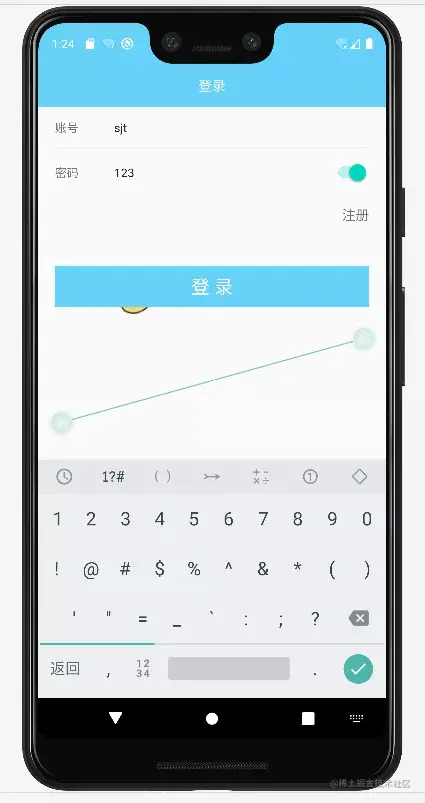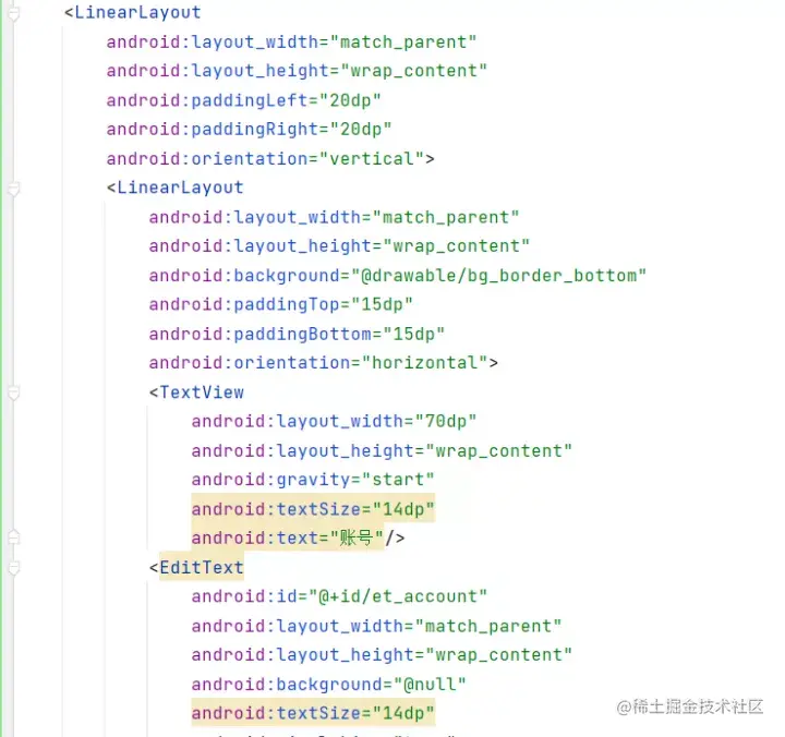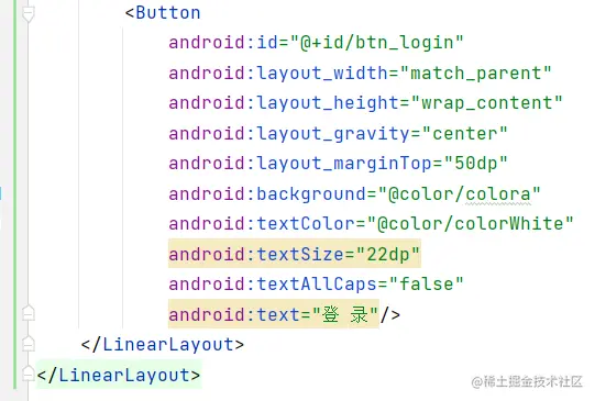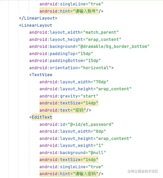 整体采用线性布局为根布局,风格多以蓝色、白色为主,使界面整体整洁舒适,这里以用户登录界面为例展示代码如下: