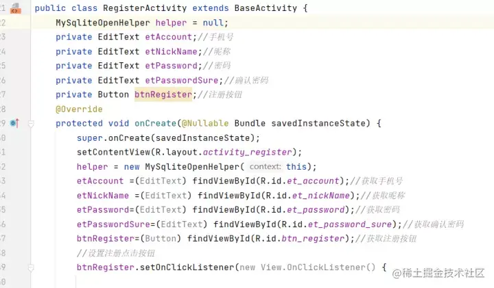mhelper=newMyDBHelper(context:RegisterActivity.this);