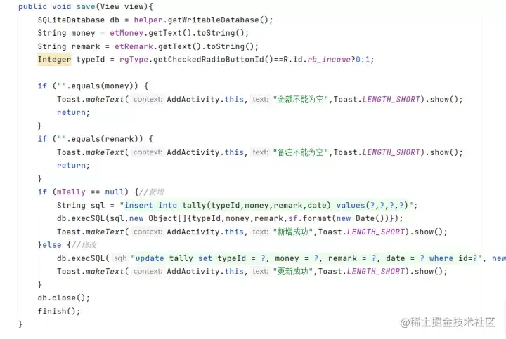 这里以用户注册登录为例,支出和收入方法相同不再赘述。