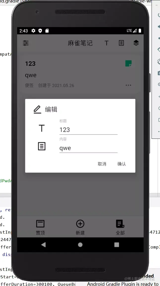 新建笔记界面