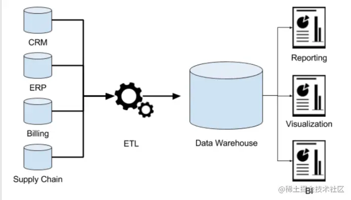 - 决策分析、报表等应用系统从数据仓库查询数据、分析数据。