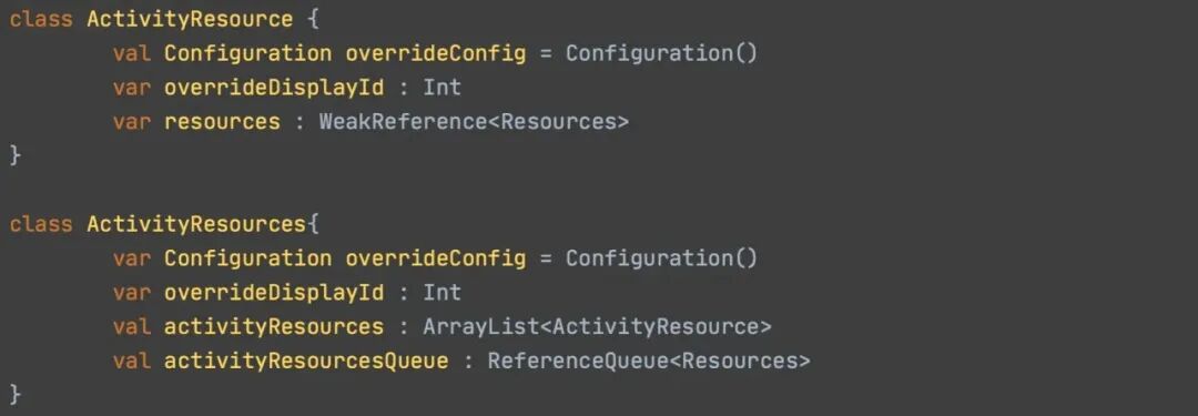 - 原来每当我们初始化一个 Activity,我们所有的 resources 都会被刷新,为什么呢,因为我们的 config 配置可能会改变,比如深色模式切换等。