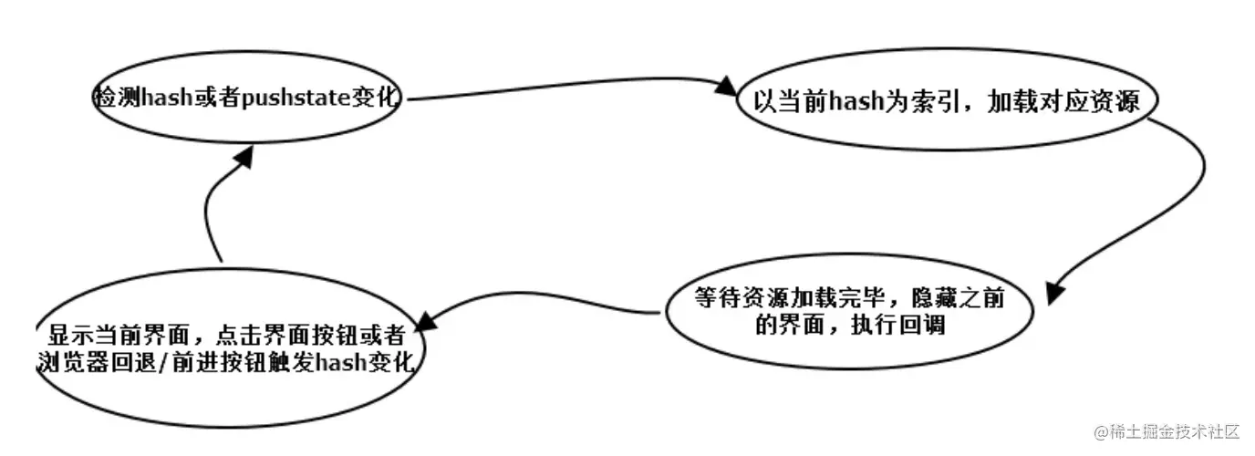 hashchange事件来监听hash值的变化,从而对页面进行跳转(渲染)