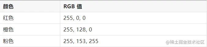 下面是一些RGB颜色的例子: