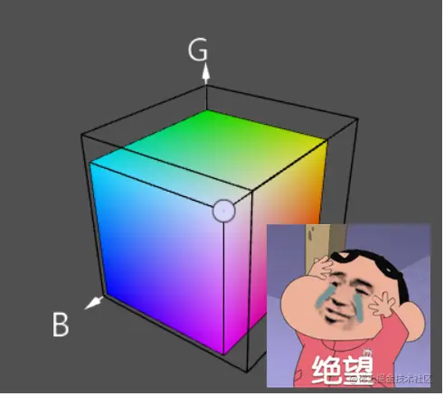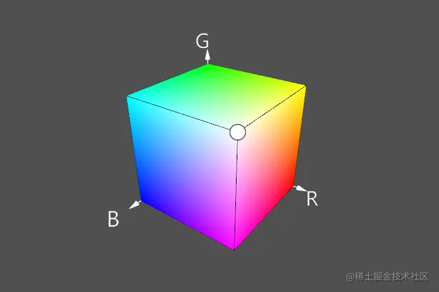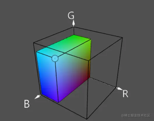 RGB颜色模型可以理解为三维笛卡尔坐标系中的立方体,红色、绿色和蓝色通道各有一个轴
