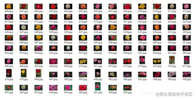 比如,文件夹名称为“6”中包含了100张花的图像,如下图所示。