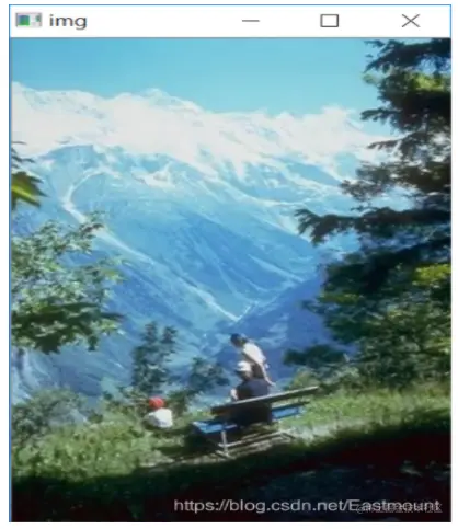 代码中对预测集的前十张图像进行了显示,其中“818.jpg”图像如图所示,其分类预测的类标结果为“8”,表示第8类山峰,预测结果正确。