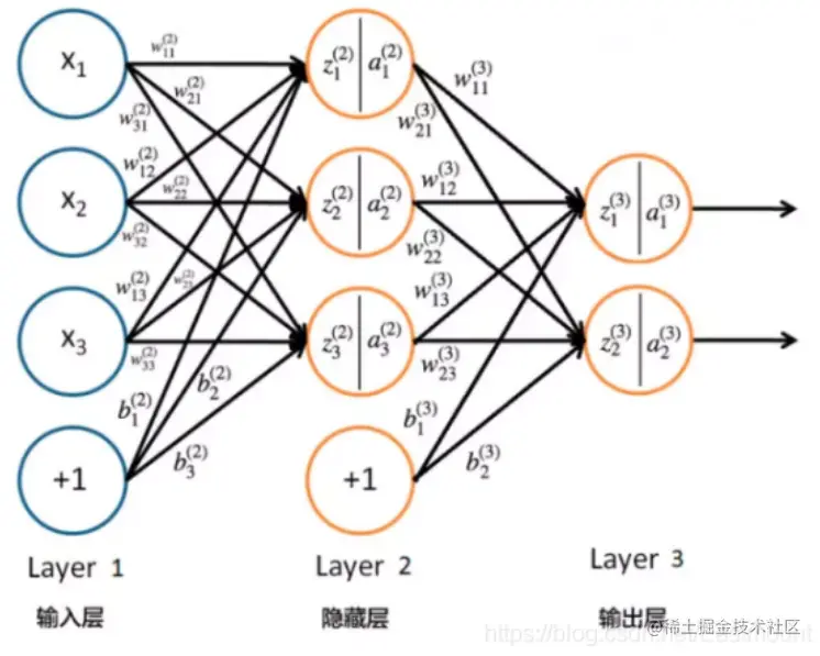 BP神经网络是一种多层的前馈神经网络,其主要的特点为:信号是前向传播的,而误差是反向传播的。BP神经网络的过程主要分为两个阶段,第一阶段是信号的前向传播,从输入层经过隐含层,最后到达输出层;第二阶段是误差的反向传播,从输出层到隐含层,最后到输入层,依次调节隐含层到输出层的权重和偏置,输入层到隐含层的权重和偏置,具体结构如下图所示。