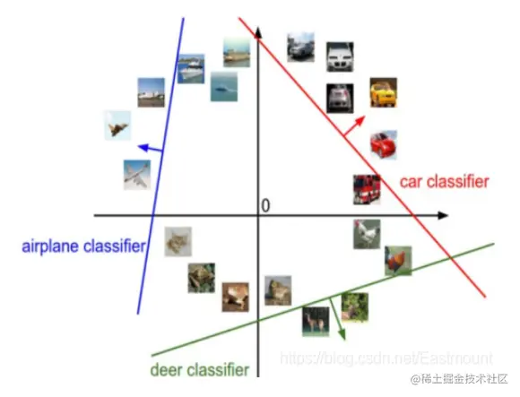 支持向量机(Support Vector Machine)是数学家Vapnik等人根据统计学习理论提出的一种新的学习方法,其基本模型定义为特征空间上间隔最大的线性分类器,其学习策略是间隔最大化,最终转换为一个凸二次规划问题的求解。SVM分类算法基于核函数把特征向量映射到高维空间,建立一个线性判别函数,解最优在某种意义上是两类中距离分割面最近的特征向量和分割面的距离最大化。离分割面最近的特征向量被称为“支持向量”,即其它向量不影响分割面。图像分类中的SVM如下图所示,将图像划分为不同类别。