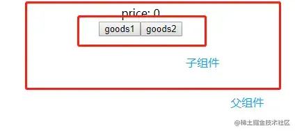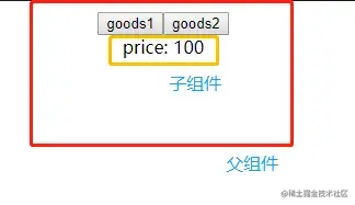 父组件: 父组件就是两个按钮,用来切换商品的价格,其中引用了子组件。
