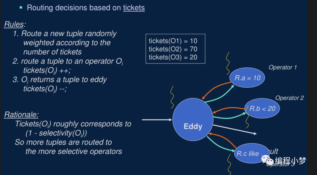 2. 彩票调度算法:原理和 CPU 的彩票调度算法一样,让每个算子处理的数据大致满足某个比例,这个比例一般和谓词的选择度有关。
