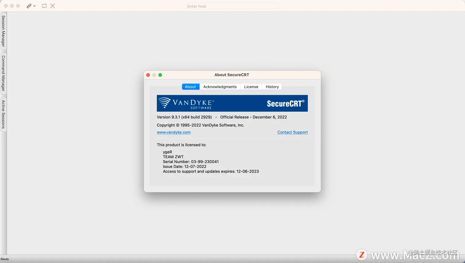 SecureCRT for Mac是一款网络专业人员可以在Mac系统上运行的SecureCRT for Mac,也可以在Mac,Linux和Windows之间轻松切换。通过使用内含的VCP命令行程序可以进行加密文件的传输。有流行CRTTelnet客户机的所有特点,包括:自动注册、对不同主机保持不同的特性、打印功能、颜色设置、可变屏幕尺寸、用户定义的键位图和优良的VT100,VT102,VT220和ANSI竞争。
