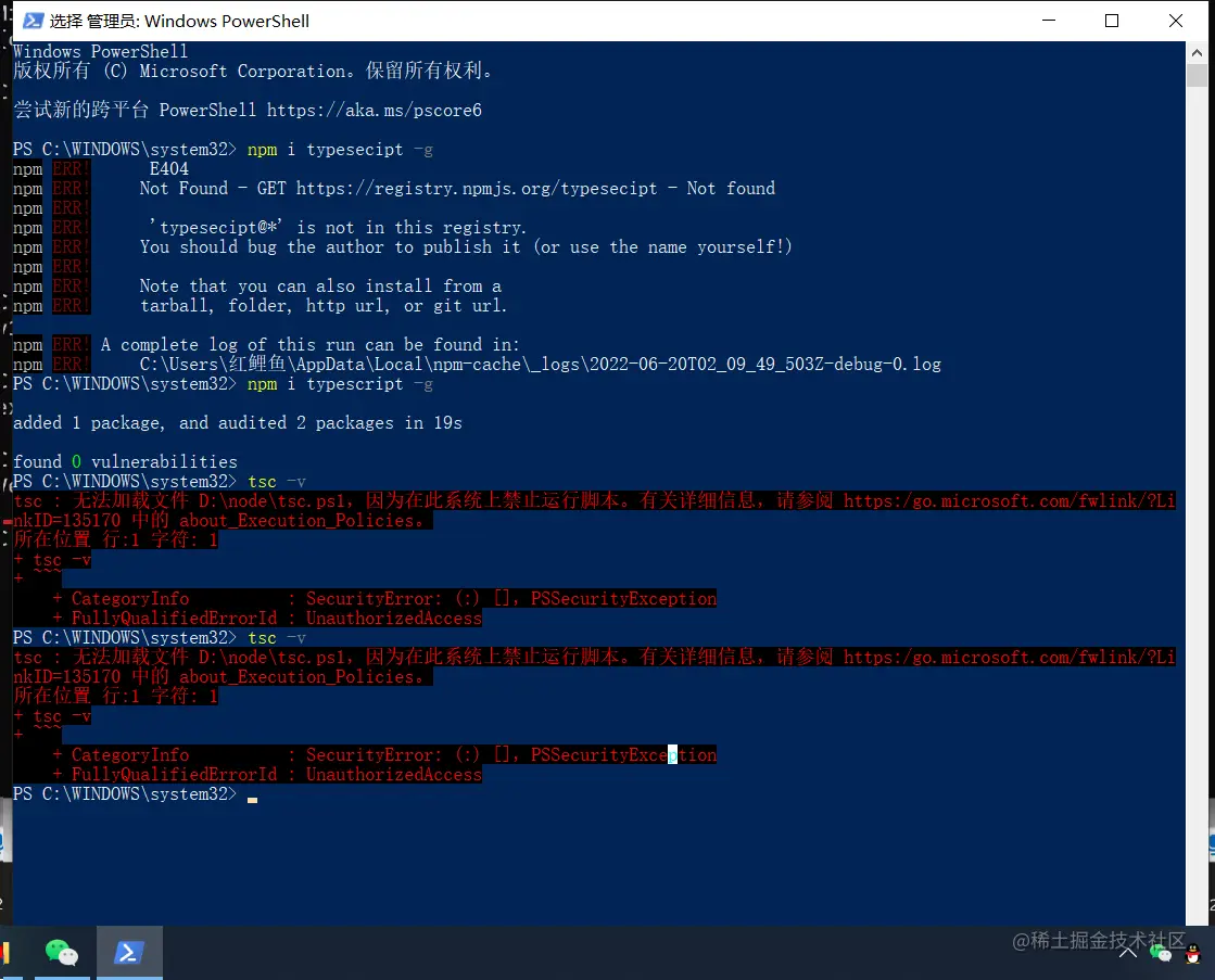 对于新手而言 使用window系统的同学请注意了!!!! window10开始 会有一个安全限制,全局安装的新的指令是无法直接使用的 yarn nrm nvm 这些,可能会出现以下的报错