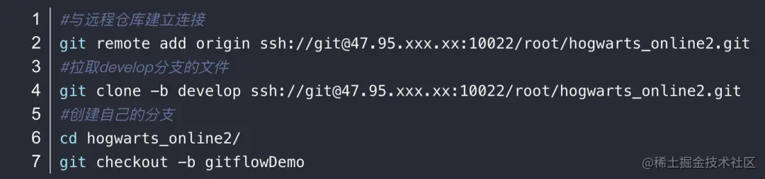 $ git pull origin developFrom ssh://47.95.238.18:10022/root/hogwarts_online2 * branch develop -> FETCH_HEADAlready up to date.