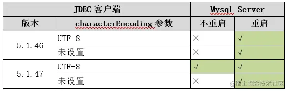 Mysql JDBC 客户端 (Mysql Connector-j) 在不同的版本中对字符集的支持有一定差异。版本的分界线在 5.1.46 和 5.1.47 。