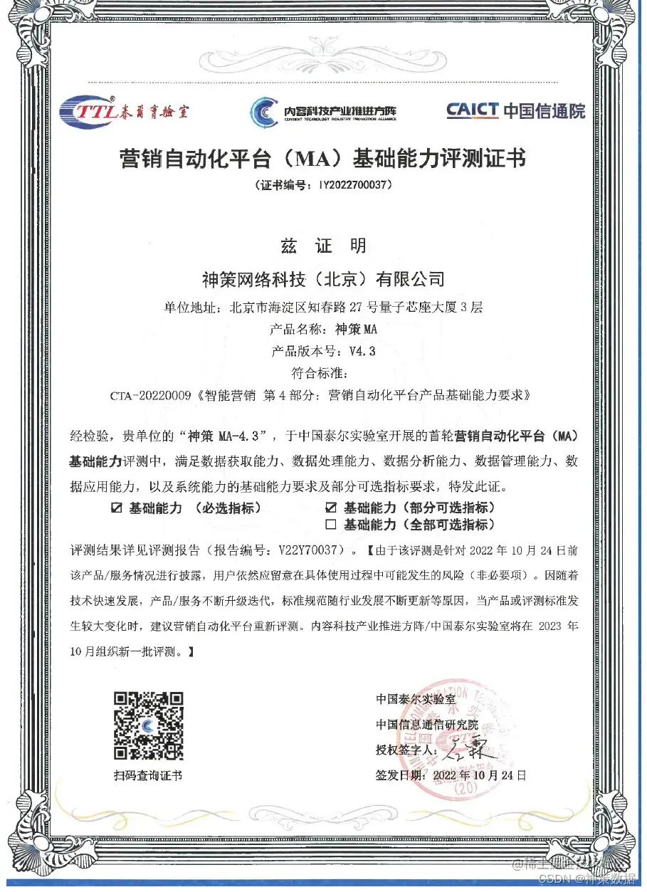 近日,在中国信通院组织的首批 MA(营销自动化平台)基础能力评测中,神策数据 MA 平台顺利通过 MA 的管理域、引擎能力、统计分析域、社交域 、系统对接域能力的全方位评测!