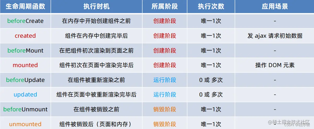 可以参考 vue 官方文档给出的“生命周期图示”,进一步理解组件生命周期执行的过程: www.vue3js.cn/docs/zh/gui…