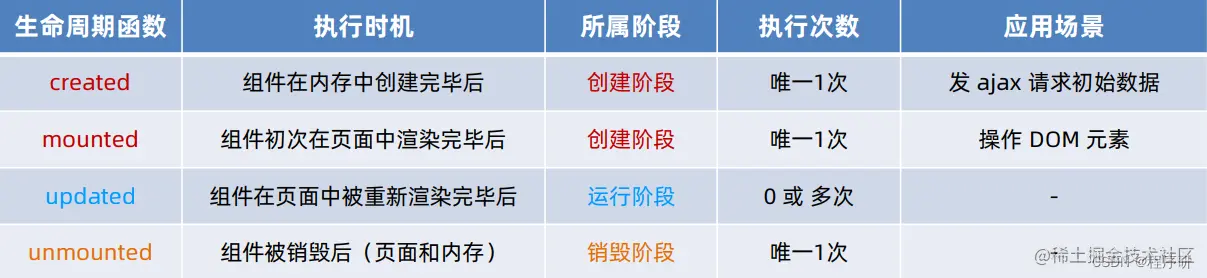 ③当组件被销毁完毕之后,会自动调用unmounted函数