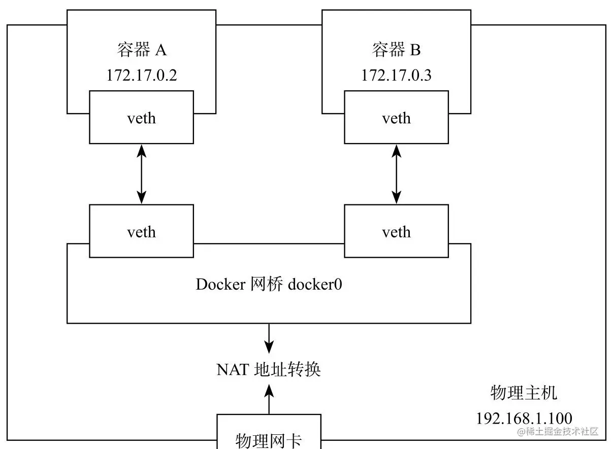 图 1 Docker 的网络实现物理拓扑图
