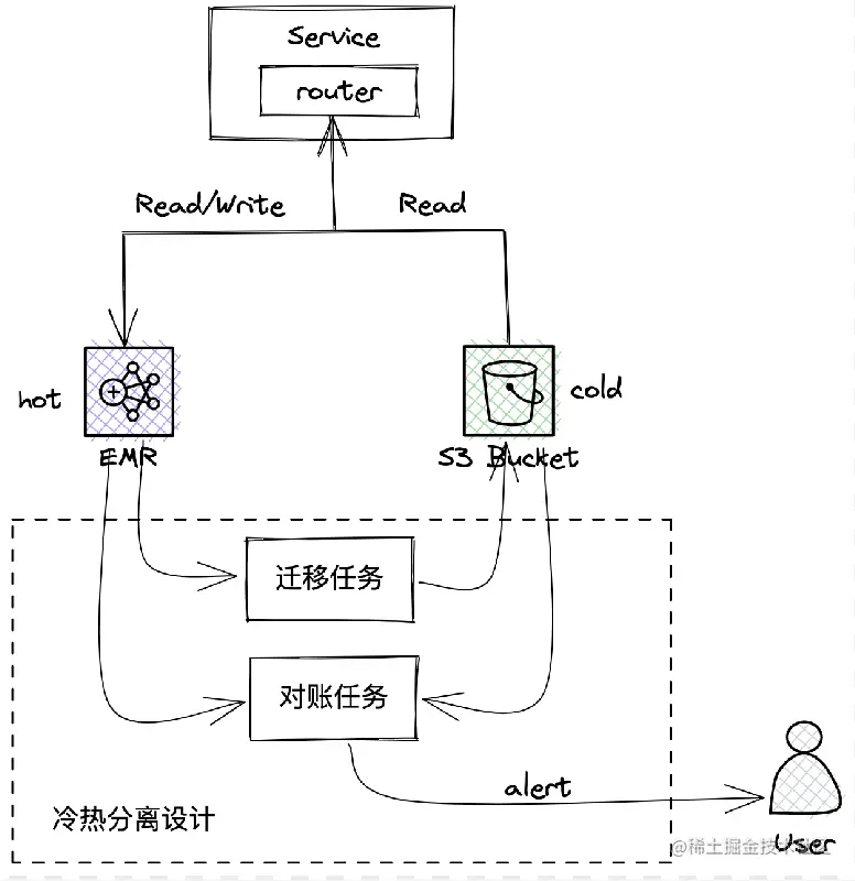 - 迁移任务根据 业务冷热划分逻辑(一般为生产时间或修改时间)进行 查询&过滤 ,将符合条件的冷数据写入冷存储,并且从热存储中删除