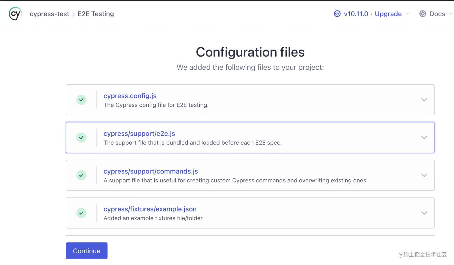 如果项目是全新的,则首先会弹出该页面,以引导用户开始使用Cypress