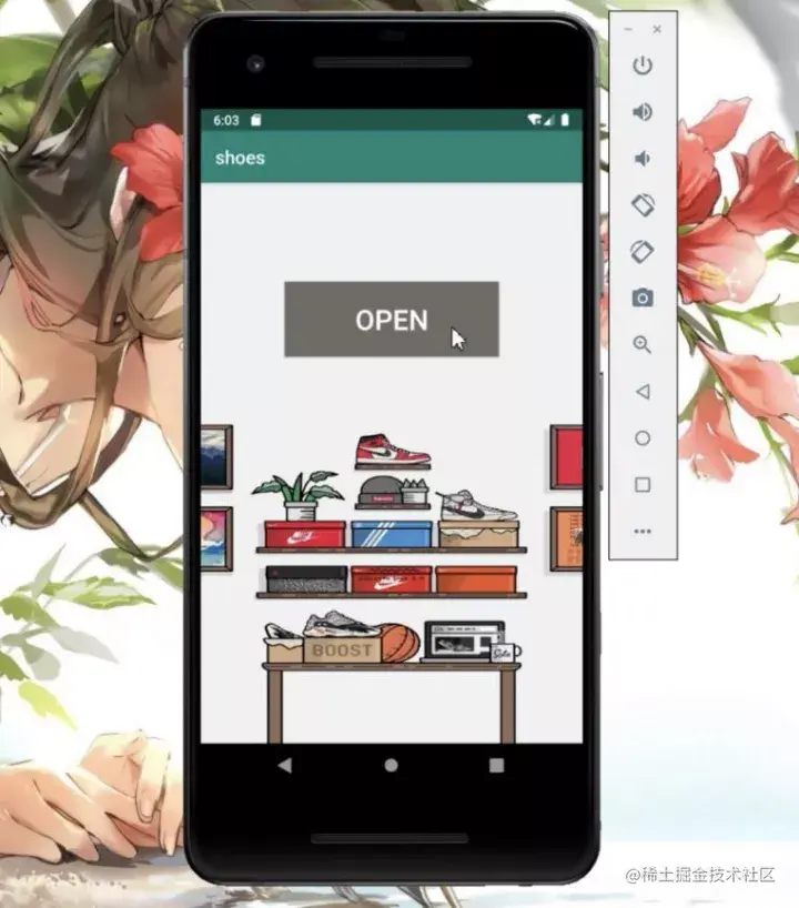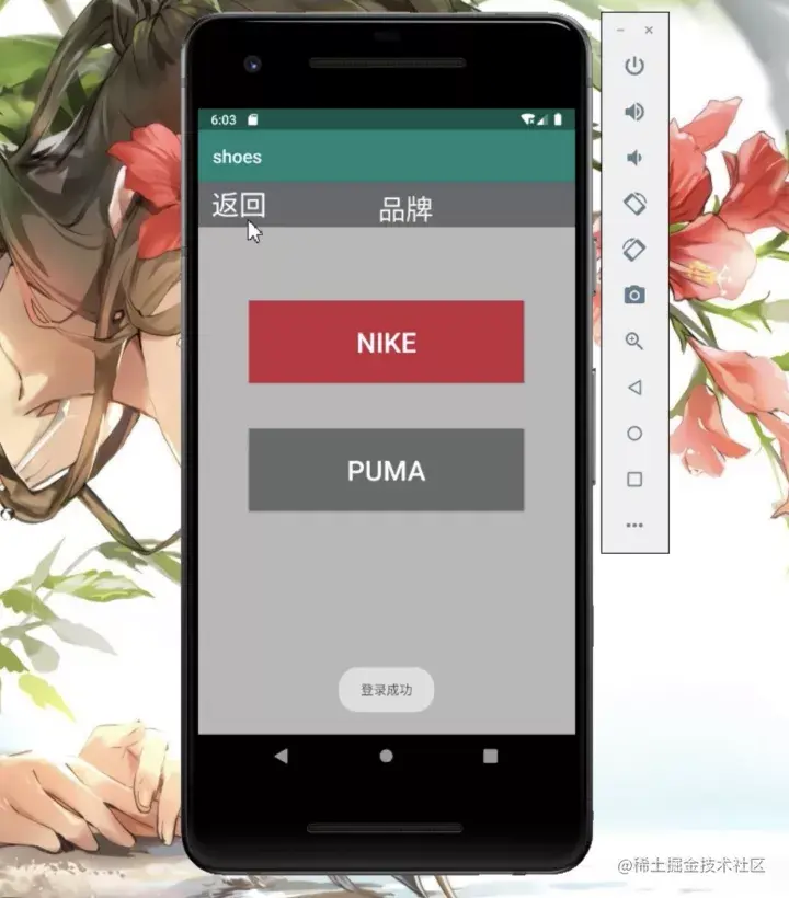 子页面: 商品子页面包含两个按钮,左上角是返回上一级。查看视频按钮,可以进入到视频播放页面观看这个鞋子的详细视频介绍。整体采用线性布局,包含上方热卖商品鞋子的线性布局和下方全部鞋子的滑动布局。