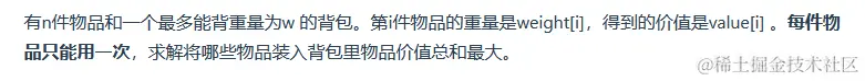 dp数组:容量为j的背包,所背的物品最大价值为dp[j]