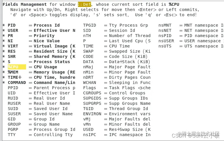 在top命令执行后按下来这些按键实现相应的功能: