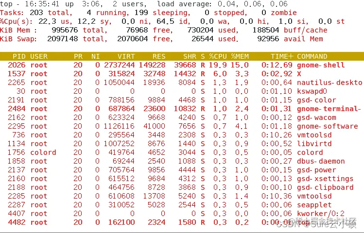 动态查看进程top,像Windows的任务管理器