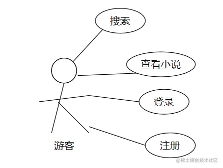 游客有着搜索、登录、注册、查看小说的功能。