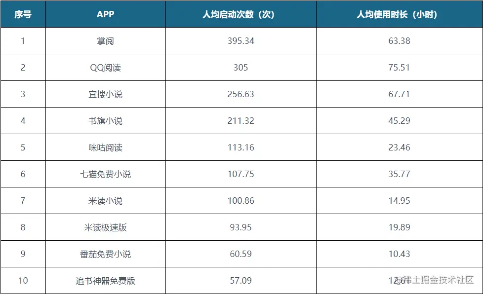 2020年2季度中国移动阅读应用活跃用户人均行为排行榜TOP10如图2-3所示