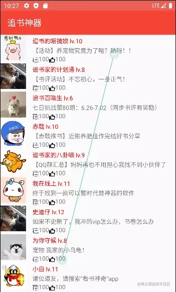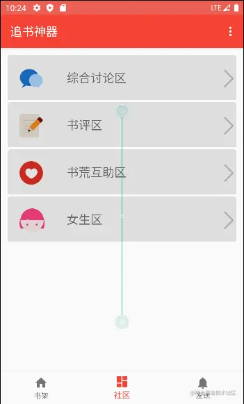 社区界面,社区界面包括综合讨论区、书评区、书荒互助去、女生区的分栏,界面如图4-4所示