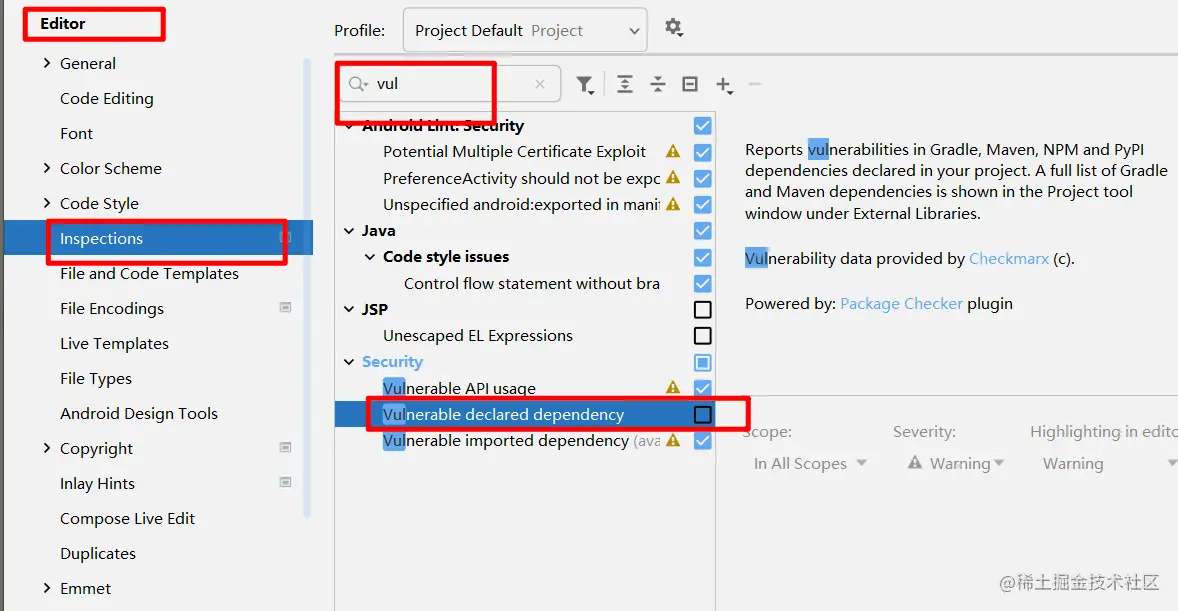 看描述是使用该插件检查依赖的安全性问题,这个插件会搜索在线的漏洞库,从而发现引用的依赖是否存在漏洞
