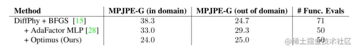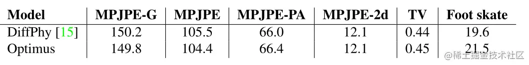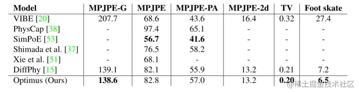 表1。针对Human3.6M验证集的运动捕捉数据进行轨迹优化的不同方法的比较。