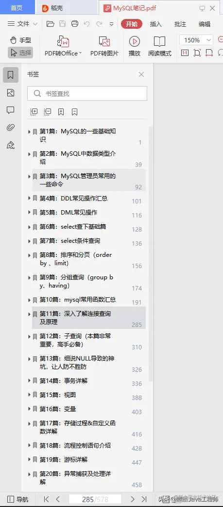 以上就是小编分享的MySQL面试真题手册,由于篇幅只展示了部分知识点,小编已经把每个专题对应的知识点整理成了文档,下面是整理的MySQL笔记手册。