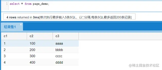 通过真实的数据库表的行数据,来强化下上面的概念。 首先新增一个表,并在表中insert两条记录。