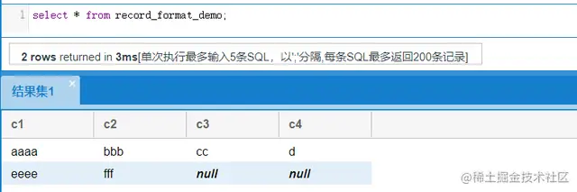 insert into record_format_demo(c1, c2, c3, c4) values