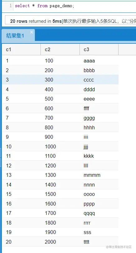 update page_demo set c3 = 'bbbb' where c2 = 300;