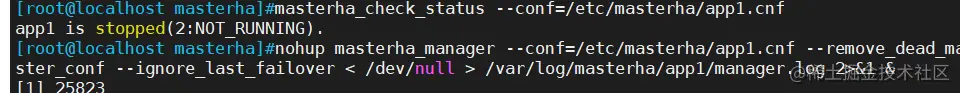 nohup masterha_manager --conf=/etc/masterha/app1.cnf --remove_dead_master_conf --ignore_last_failover < /dev/null > /var/log/masterha/app1/manager.log 2>&1 &