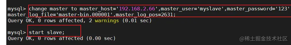 change master to master_host='192.168.10.33',master_user='myslave',master_password='12345',master_log_file='master-bin.000001',master_log_pos=1745;