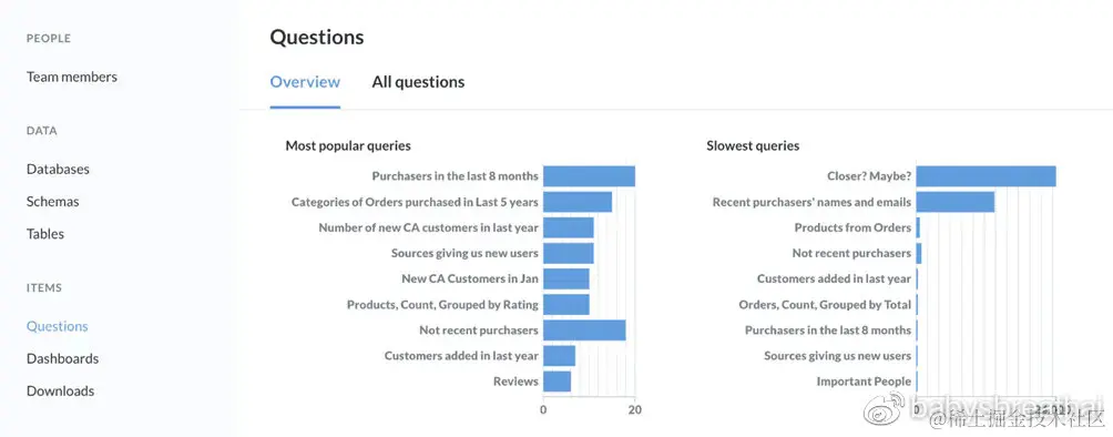 假设我们最近锁定了一个关键问题,重要用户,并想看看固定它是否有助于推动问题的流量。在问题部门 “概述”选项卡,我们将看到两个图表:最流行的查询和加载最慢的查询。